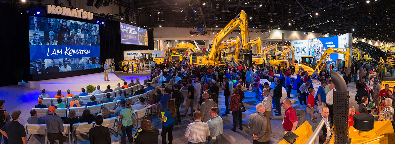 Attendance at major construction equipment conventions totals over 125,000 people. Komatsu turns to M squared OnStage to help develop creative means of attracting attention and driving traffic to their booth.